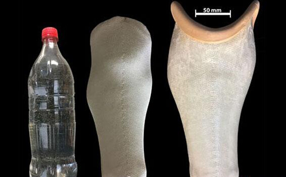 ????????據外媒報道,來自英格蘭德蒙福特大學的Kandan博士研發出了一種用廢塑料制成的假肢接受腔,他將塑料水瓶廢料磨碎,用所得材料紡成聚酯紗線,然后將其加熱并模塑制成。目前高質量的假肢接受腔可能花費大約5000英鎊,而由塑料廢物制成的東西每只成本大約只需10英鎊。