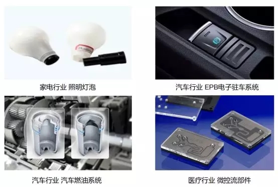 ????????比如汽車行業的汽車儀表板、車燈、燃油系統塑料部件、新能源汽車電池、EPB電子駐車系統塑料部件等;