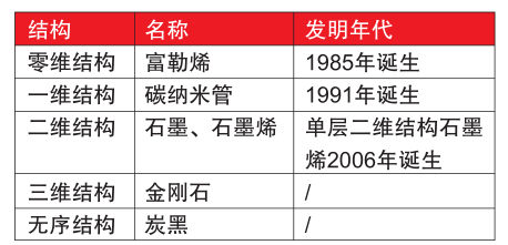 ????????石墨烯為碳的一種新的同素異構體,截止到目前已開發的各類碳材料的不同同素異構體如表1所示。