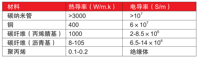 ????????碳納米管具有良好的傳熱性能,CNTs具有非常大的長徑比,因而其沿著長度方向的熱交換性能很高,相對的其垂直方向的熱交換性能較低,通過合適的取向,碳納米管可以合成高各向異性的熱傳導材料。另外,碳納米管有著較高的熱導率,只要在復合材料中摻雜微量的碳納米管 ,該復合材料的熱導率將會可能得到很大的改善碳納米管的導電和導熱性能具體見表3所示。