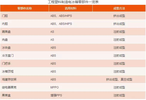 ????????目前在家電產品中,冰箱對塑料原材料的需求最大,平均每臺冰箱塑料占比高達30~50%甚至更大,其中PS、聚氨酯、ABS和PP在冰箱中占有重要比重。