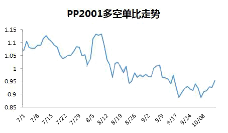 ????????放長(zhǎng)時(shí)間看,自從2019年3月底到4月底,PP2001持倉(cāng)多空比一直在50%臨界線之下,4月底到8月中旬,多空比在50%臨界線之上震蕩,8月中旬到目前在50%臨界線之下。跟基本面走勢(shì)并不吻合。當(dāng)多空比與期現(xiàn)價(jià)格走勢(shì)產(chǎn)生背離時(shí)候,要提高警惕,分析原因并判斷真實(shí)方向。PP2001合約在9月份換為主力合約,太長(zhǎng)時(shí)間的參考意義不大。