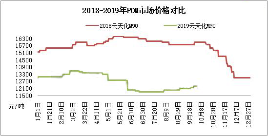 ????????國產料方面:上旬貨緊給予市場較強支撐,POM成本面價格相對堅挺,場內炒漲氣氛較濃,主流牌號漲幅100-200元/噸,然需求面未有明顯改觀,小單靈活采購為主,成交剛需維持。中旬POM貨緊形勢難改,加之反傾銷利好消息釋放,業者看漲心態較多,補貨意向較為強烈,部分下游工廠受環保影響開工負荷難有提升,仍有部分下游用戶買漲不買跌心理,備貨積極性較高,終端需求呈現較好回升,但整體空間有限。下旬POM供不應求格局加劇,國產料廠家云天化上調出廠價格300元/噸,貿易商心態較好,報盤重心穩步走高,漲幅100-200元/噸,由于國慶假期臨近,下游用戶及時補充庫存為主,交投氣氛表現活躍。