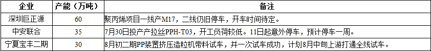 ????????三季度,聚丙烯市場關注度較高的幾套新裝置,均有新進展。8月份新增產能釋放,華東、華南資源存增加預期。