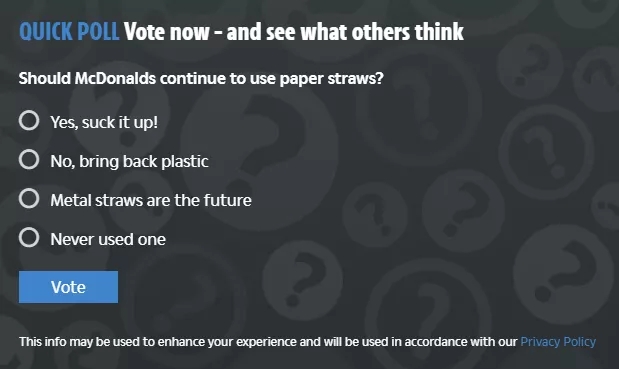 ????????當時麥當勞英國首席執行官Paul Pomroy在接受Sky News的采訪時說“現在麥當勞使用的塑料吸管其實是可回收的。但是還是有很多消費者向他們表示不滿,覺得用塑料吸管總體來說還是對環境不好。”
