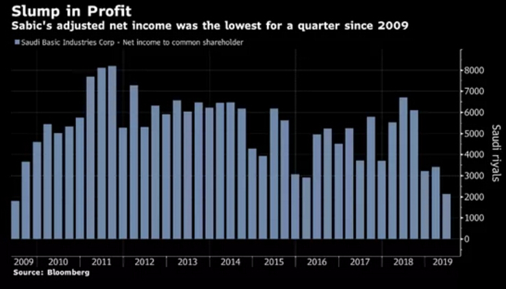 ????????“在全球GDP增長放緩的同時,由于新供應能力顯著增加導致石化產品價格下降,關鍵產品線的利潤率降低,”他在SABIC的業績聲明中表示。