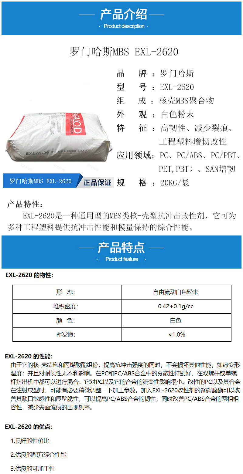 - MBS美國羅門哈斯2620 塑料增韌劑 ABS增韌 PS抗沖擊改性 mbs2620 物性表, MBS美國羅門哈斯2620 塑料增韌劑 ABS增韌 PS抗沖擊改性 mbs2620 產品參數,MBS美國羅門哈斯2620 塑料增韌劑 ABS增韌 PS抗沖擊改性 mbs2620 性能表,MBS美國羅門哈斯2620 塑料增韌劑 ABS增韌 PS抗沖擊改性 mbs2620 出廠報告, MSDS,, 物質安全資料表, UL黃卡,{ SGS報告, RoHS, 食品級認證, NSF飲用水標準, 產品資料, 產品性能, 出廠報告, 原廠原包, 代理商, 熱變形溫度, 熔指數, 流動系數, 抗沖擊性能、沖擊強度, 低溫韌性、低溫抗沖擊性能, 熔體流動系數、熔體流動速率, 加工工藝、加工參數、加工溫度, 歐盟RoHS 德國FDA 美國FDA 日本FDA