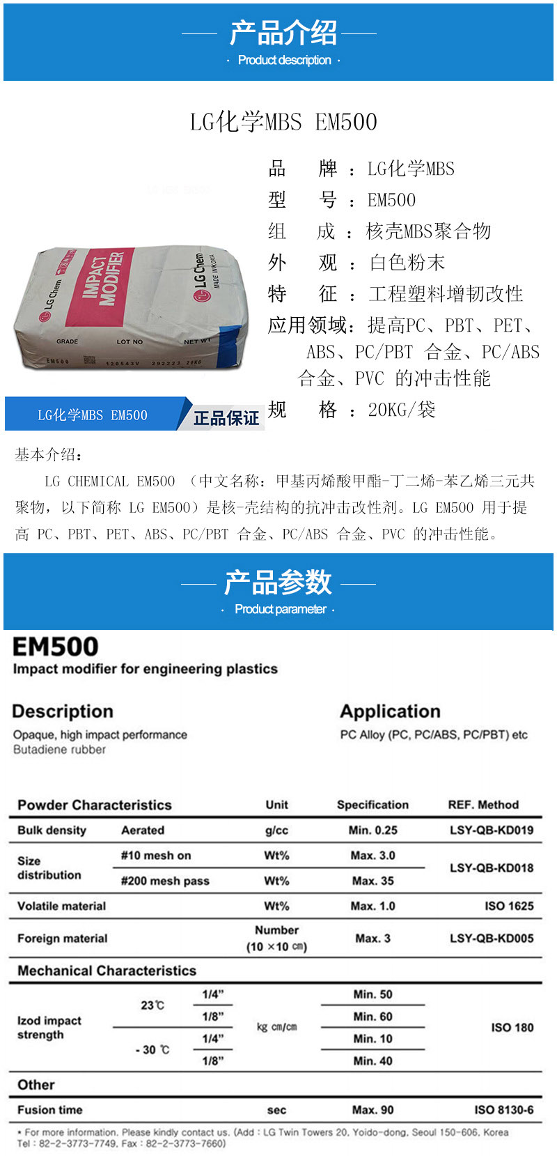 - MBS增韌劑 韓國LG EM500 抗沖擊改性劑 PC ABS工程塑料增韌 mbs50 物性表, MBS增韌劑 韓國LG EM500 抗沖擊改性劑 PC ABS工程塑料增韌 mbs50 產(chǎn)品參數(shù),MBS增韌劑 韓國LG EM500 抗沖擊改性劑 PC ABS工程塑料增韌 mbs50 性能表,MBS增韌劑 韓國LG EM500 抗沖擊改性劑 PC ABS工程塑料增韌 mbs50 出廠報告, MSDS,, 物質(zhì)安全資料表, UL黃卡,{ SGS報告, RoHS, 食品級認(rèn)證, NSF飲用水標(biāo)準(zhǔn), 產(chǎn)品資料, 產(chǎn)品性能, 出廠報告, 原廠原包, 代理商, 熱變形溫度, 熔指數(shù), 流動系數(shù), 抗沖擊性能、沖擊強度, 低溫韌性、低溫抗沖擊性能, 熔體流動系數(shù)、熔體流動速率, 加工工藝、加工參數(shù)、加工溫度, 歐盟RoHS 德國FDA 美國FDA 日本FDA